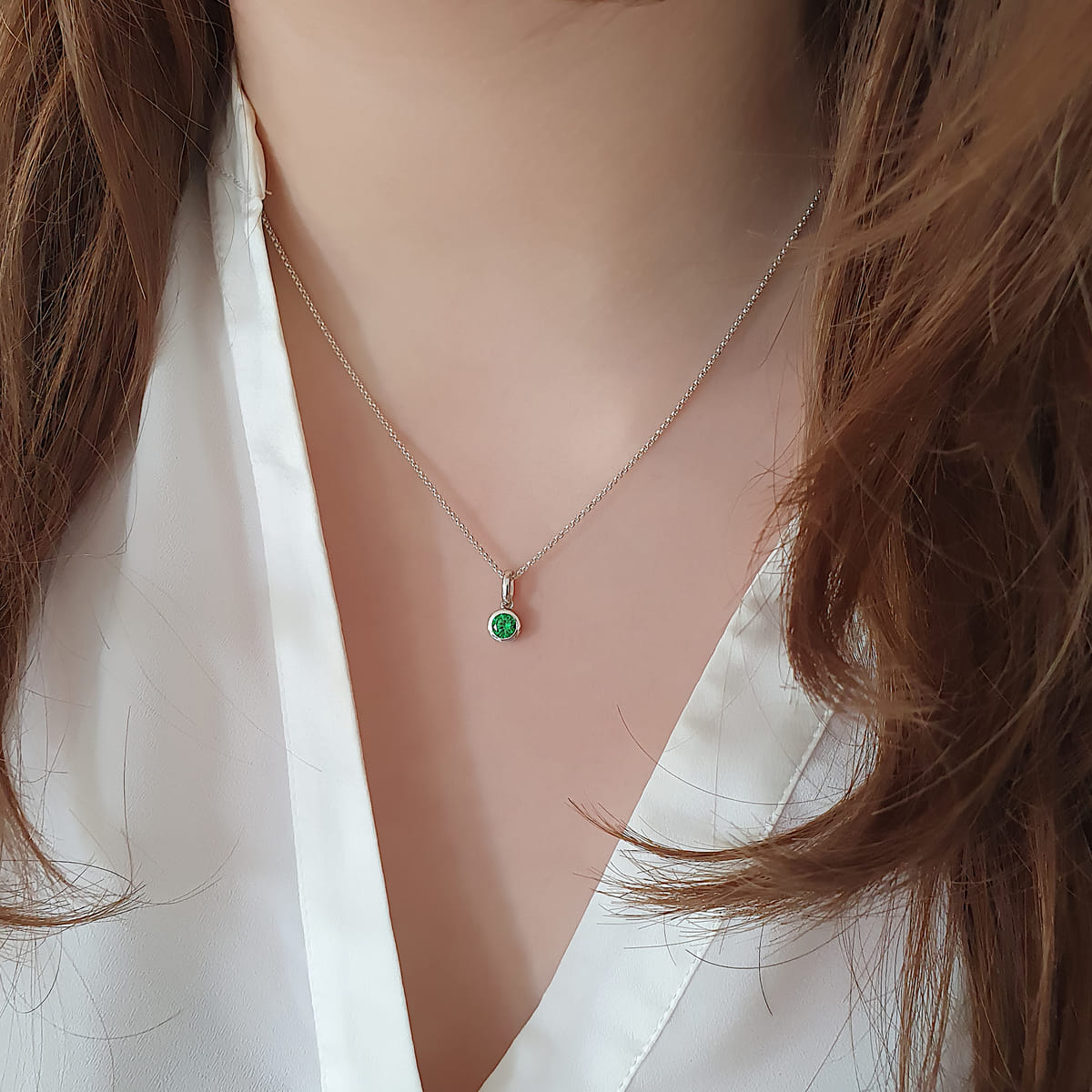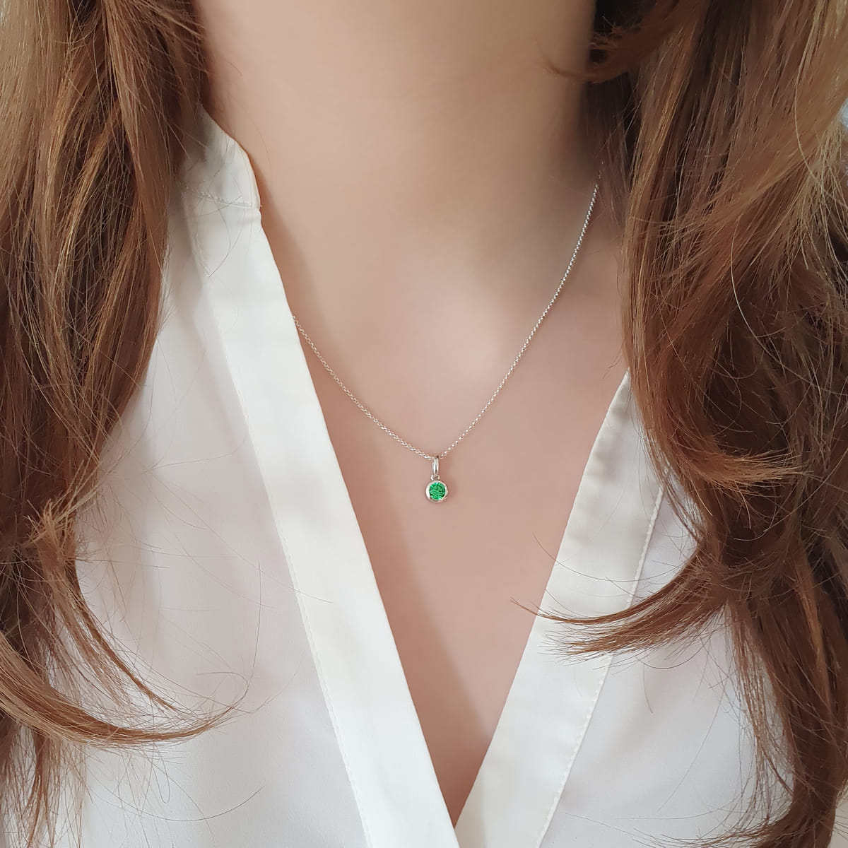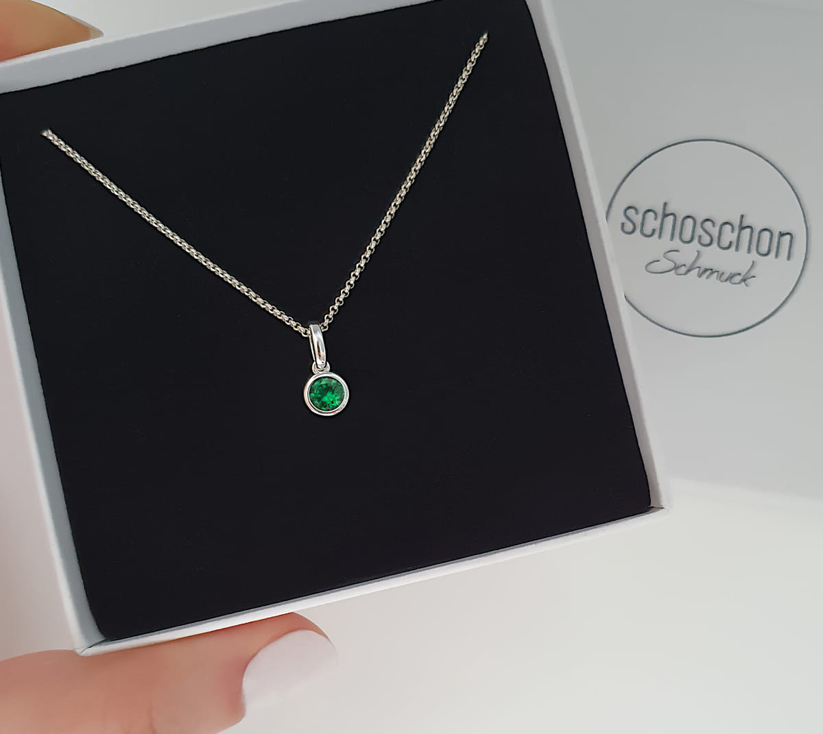 Produktinformationen "Halskette mit kleinem grünem Anhänger Zirkon Rollokette 925 Silber"