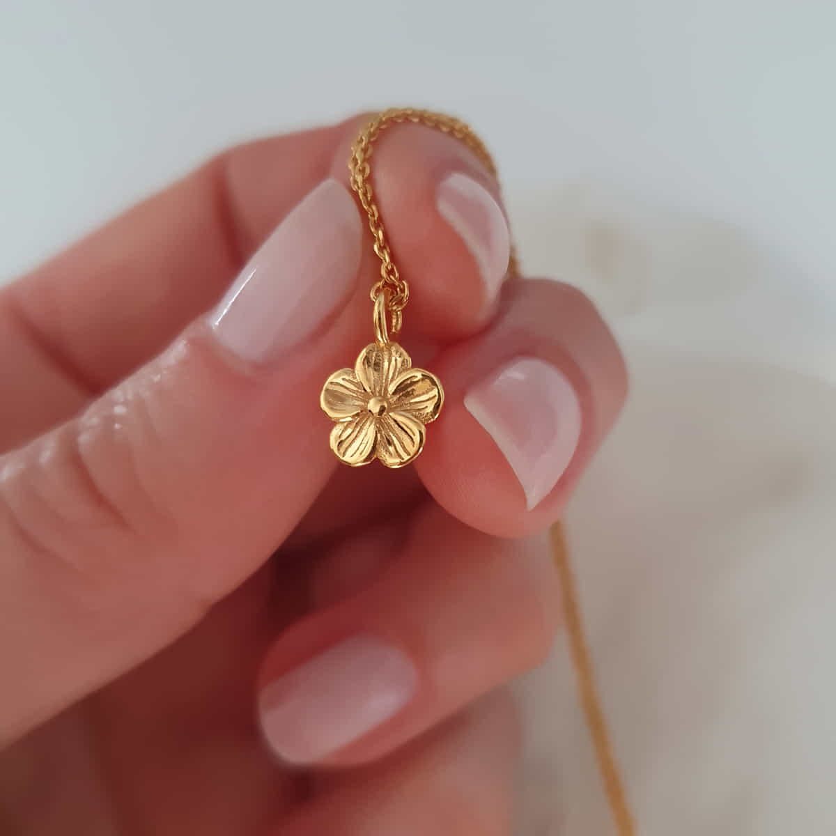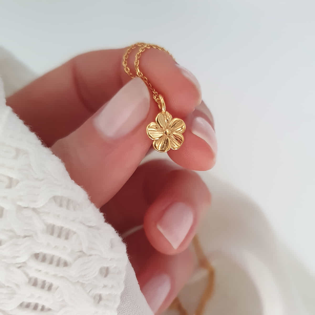 Die minimalistische Verarbeitung der fünfblättrigen Blüte macht sie zu einem vielseitigen Accessoire, das sowohl im Alltag als auch zu besonderen Anlässen getragen werden kann.