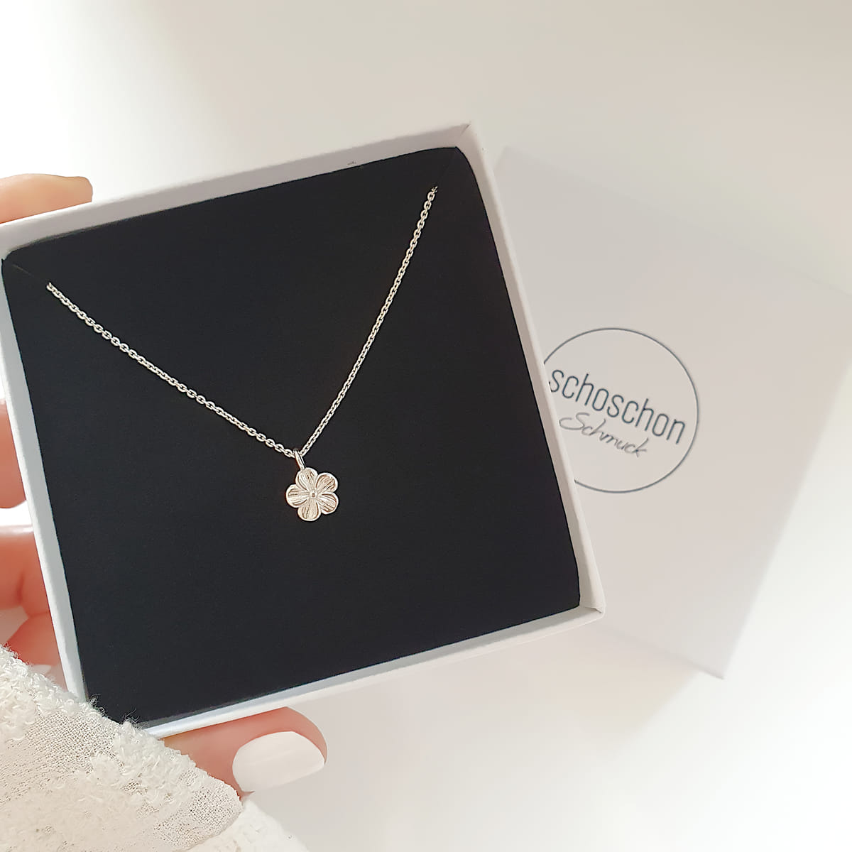 Diese filigrane Halskette mit einem minimalistischen Blumenanhänger aus 925er Silber ist ein perfektes Accessoire für jeden Anlass.