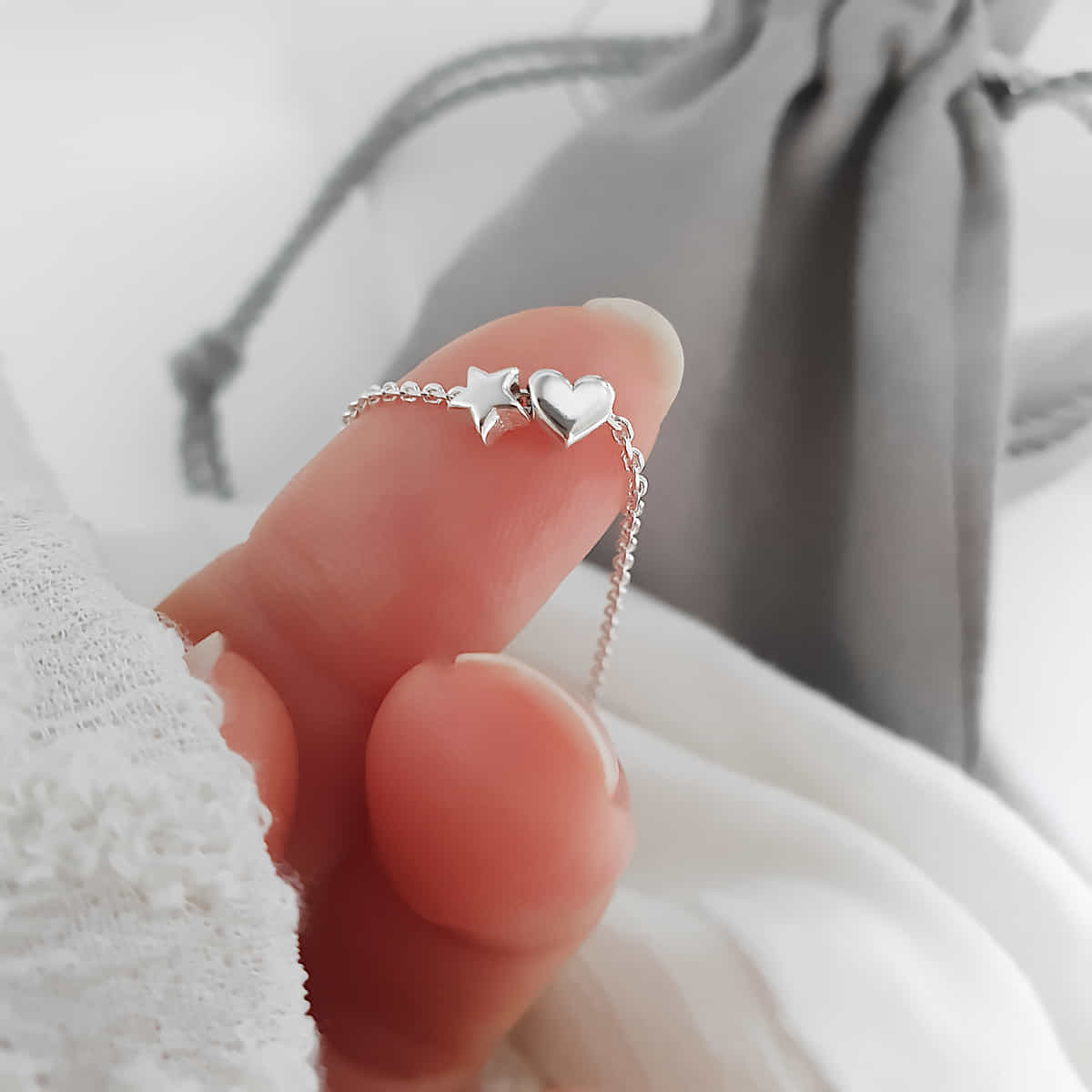Eine Kette mit Herz- und Sternanhänger verkörpert Harmonie und erinnert daran, seinen Träumen zu folgen und das Herz an erster Stelle zu setzen.