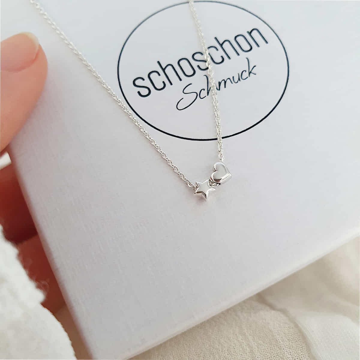 Herzchen Stern Halskette 925 Silber - zierlicher Schmuck