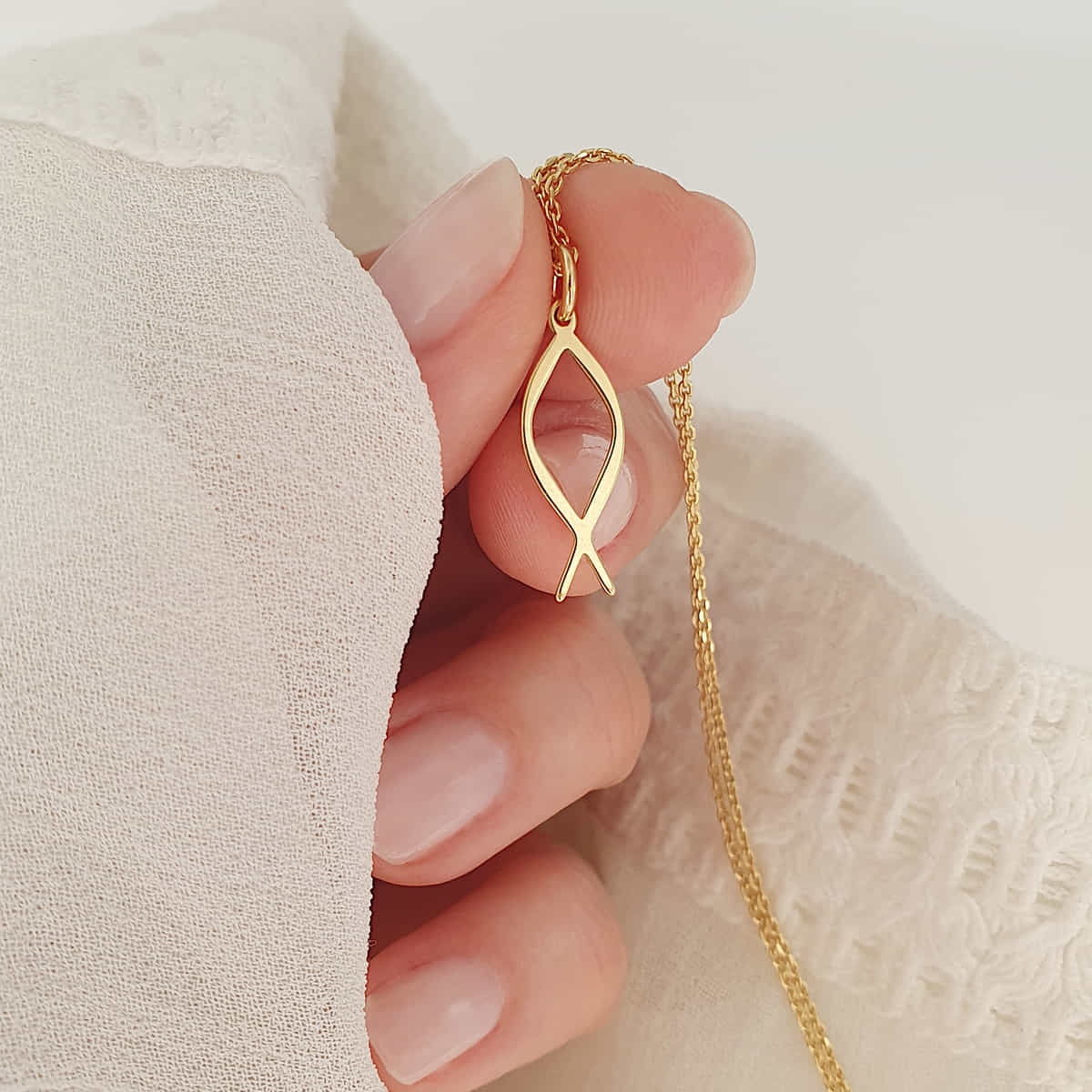 Mit einem stilvollen Fisch-Anhänger im trendigen Schoschon-Schmuckdesign bietet diese Kette eine zeitlose und bedeutungsvolle Ergänzung zu jedem Schmuckkästchen. Der Fischanhänger, verziert mit dem bekannten Ichthys-Symbol, symbolisiert seit Jahrhunderten Glaube und Hingabe im christlichen Glauben. Die Kette ist in Silber, 925er Silber vergoldet und 925er Silber rosevergoldet erhältlich – ein besonderes Schmuckstück für jeden Stil! Mit ihrer zierlichen und verspielten Ausstrahlung verleiht sie jedem Outfit eine elegante Note.