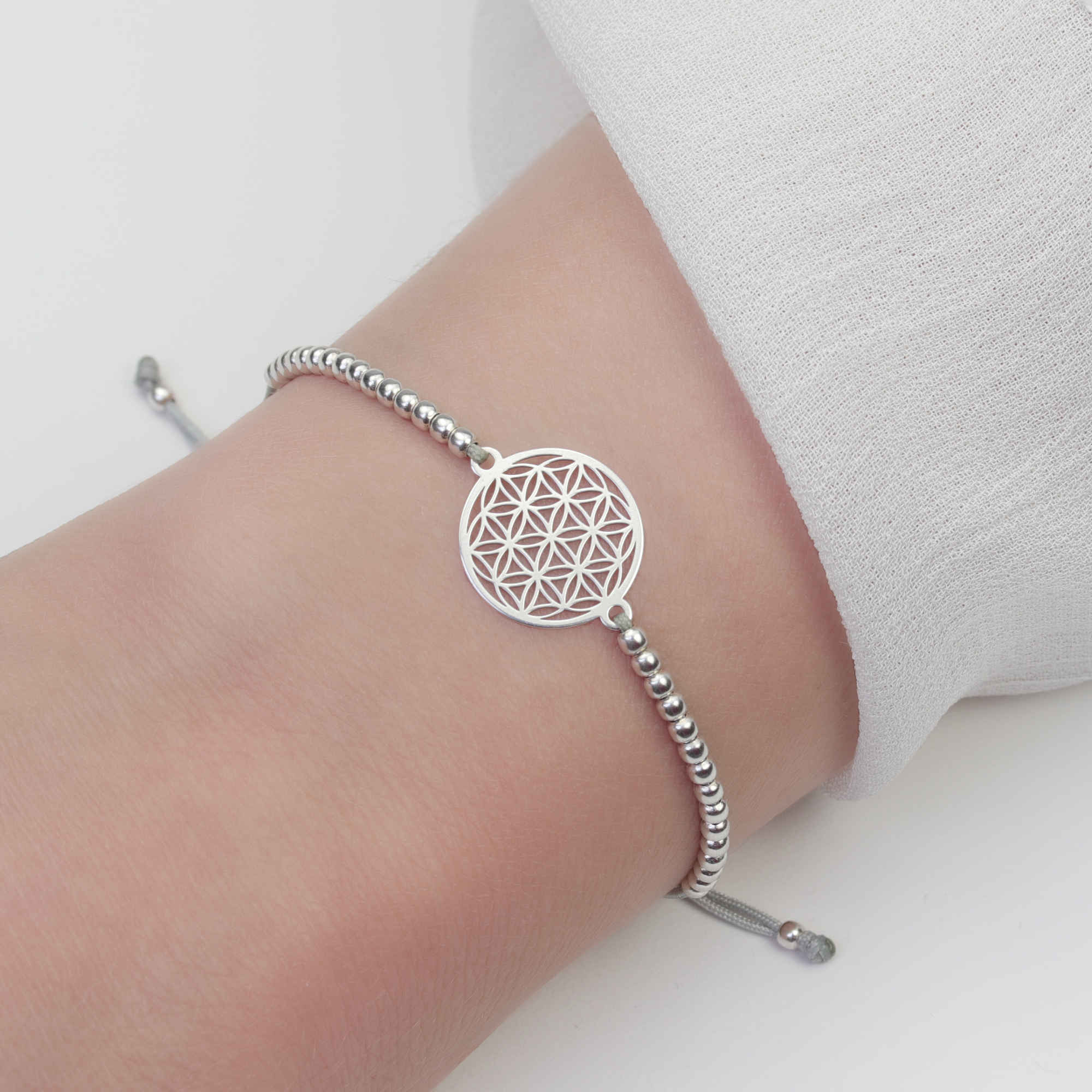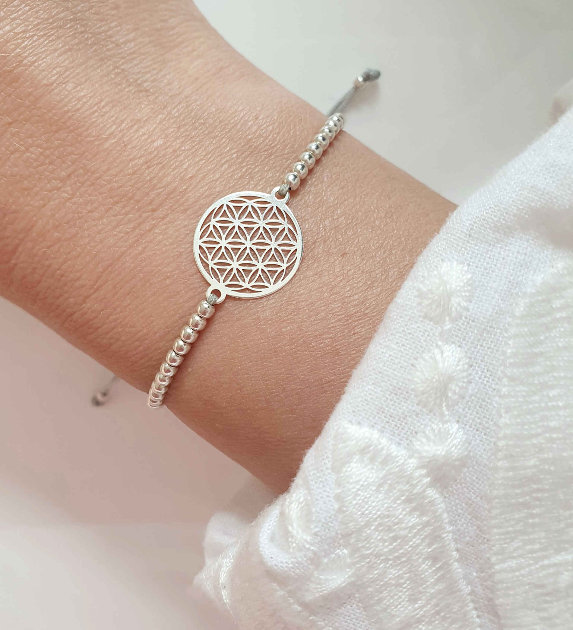 Lebensblume Armband 925 Silber | Kugelarmband Blume des Lebens Schmuck Geschenk