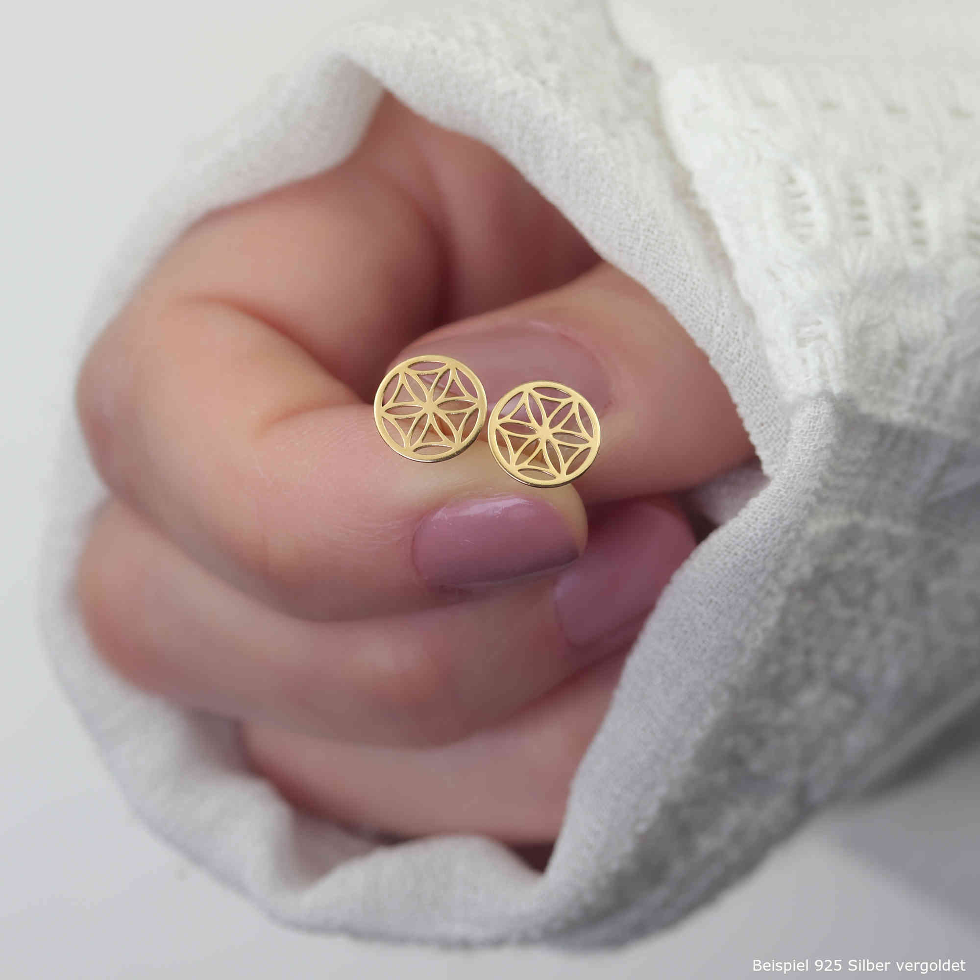Blume des Lebens Ohrstecker 925 Silber vergoldet | Lebensblume Ohrringe Ohrschmuck
