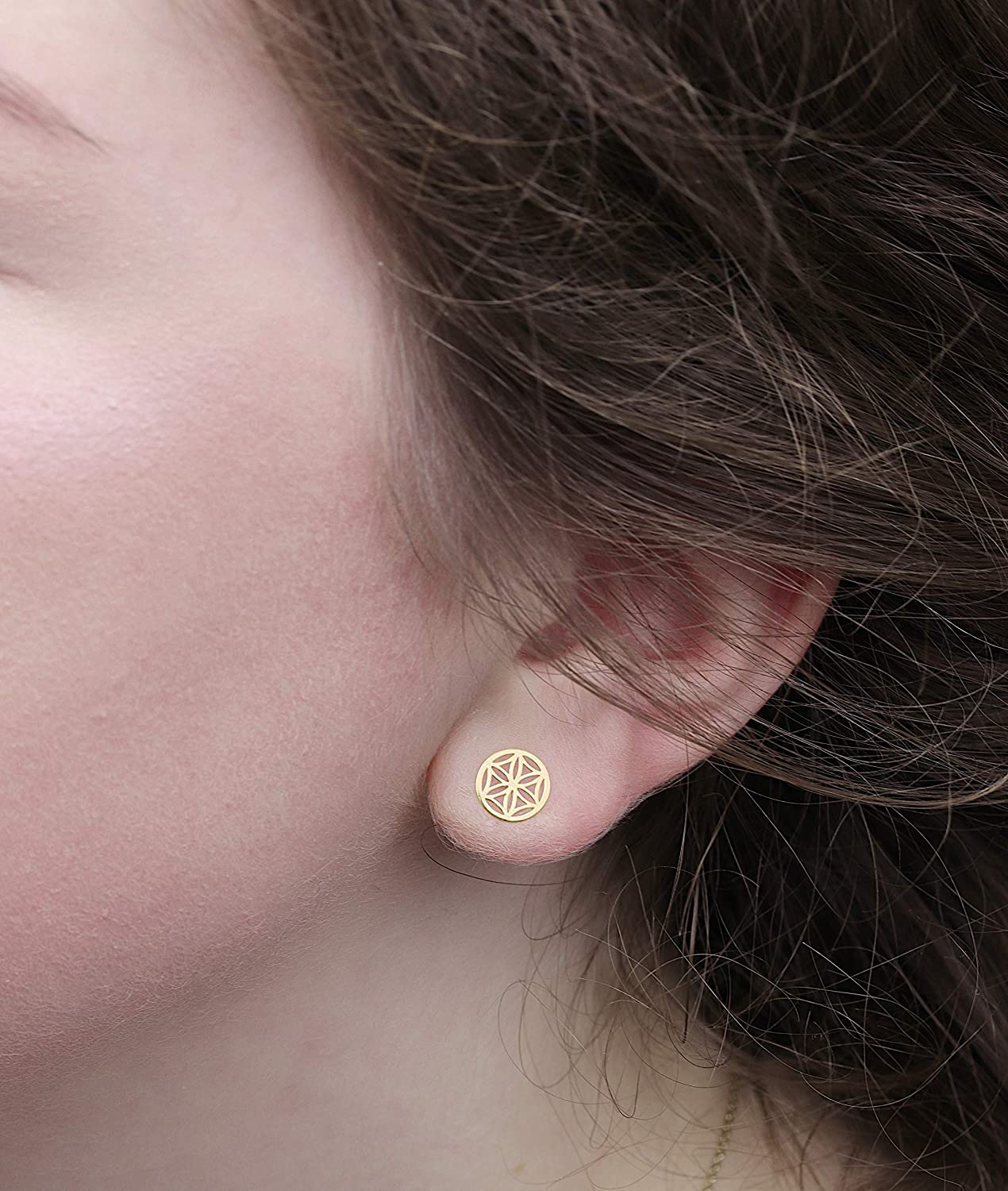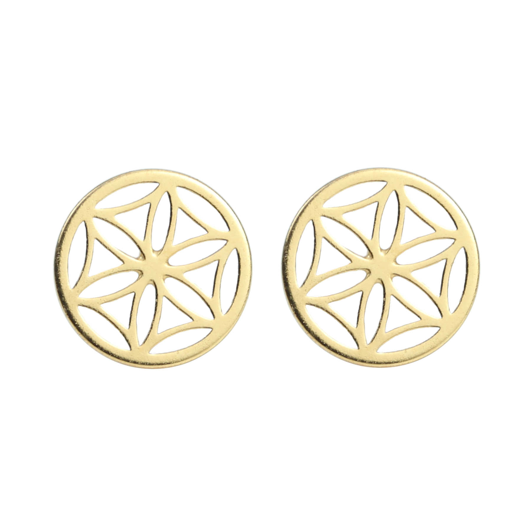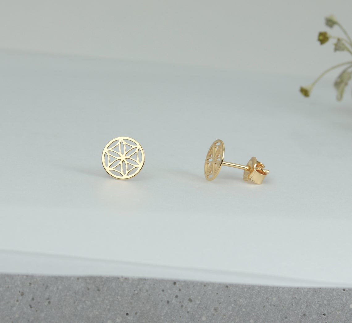 Feine Blume des Lebens Ohrstecker aus vergoldetem 925 Silber. Die Blume des Lebens Ohrringe stehen in drei Varianten zur Verfügung: Silber, Silber rosevergoldet und Silber vergoldet.