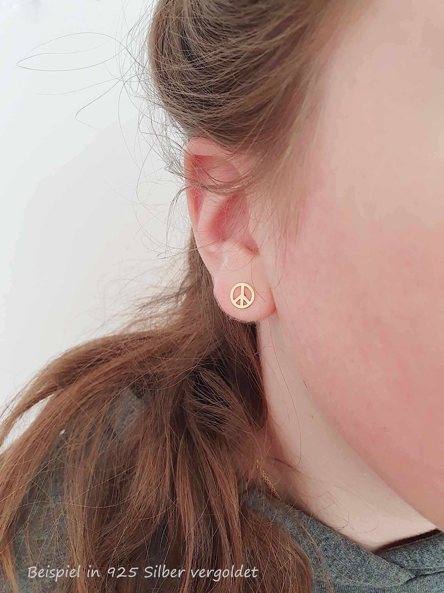 Ohrstecker Friedenszeichen Peace 925 Silber rosevergoldet | Hippie Ohrringe