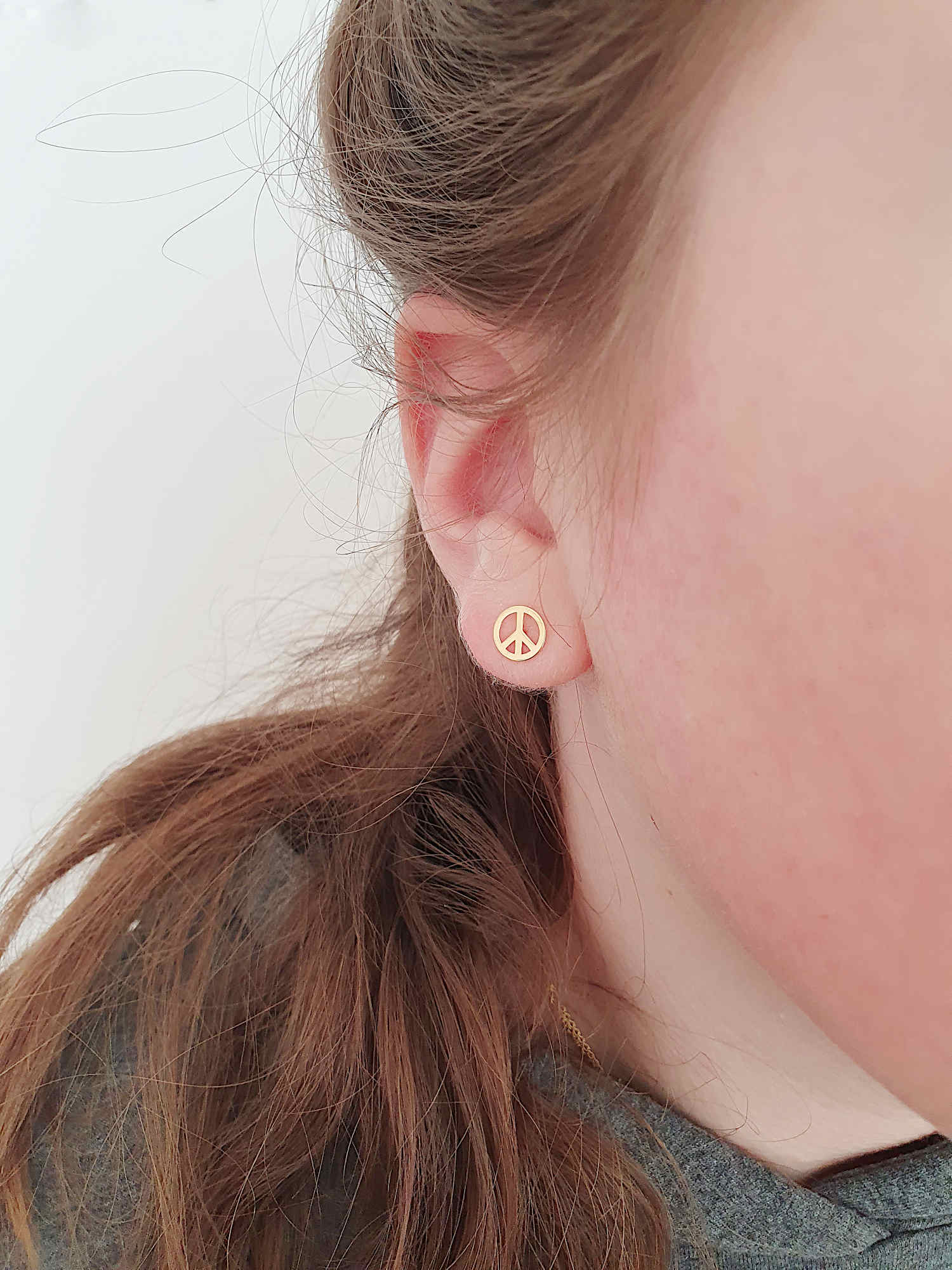 Ohrstecker Friedenszeichen Peace 925 Silber vergoldet | Hippie Ohrringe-Copy