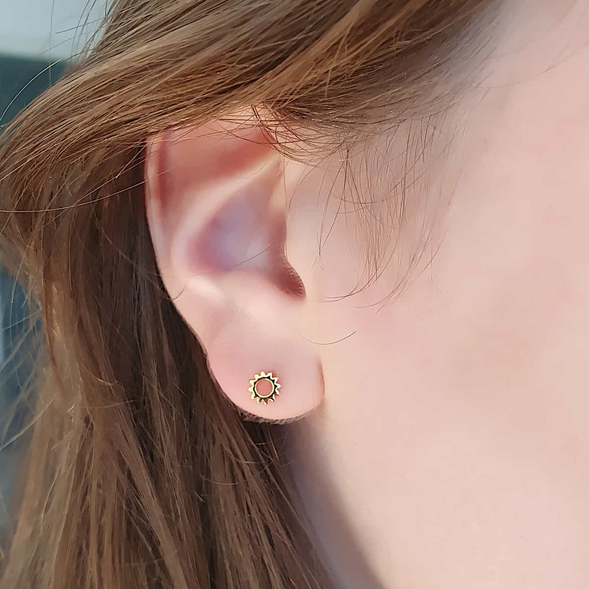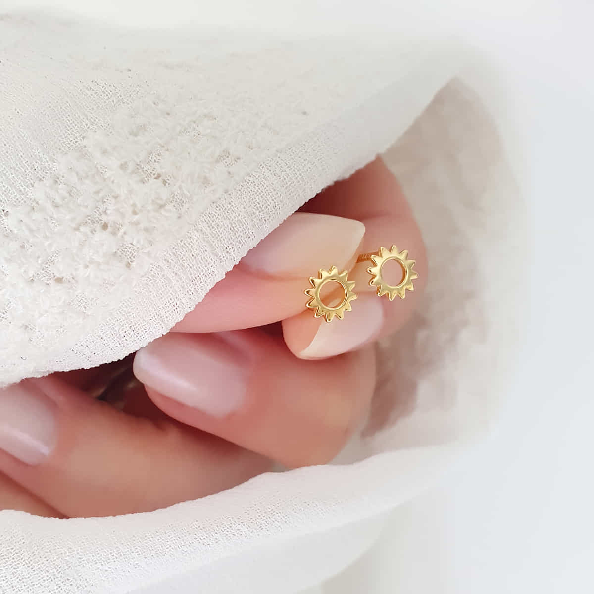 Minimalistische Ohrstecker mit einem edlen Sonne-Symbol.
