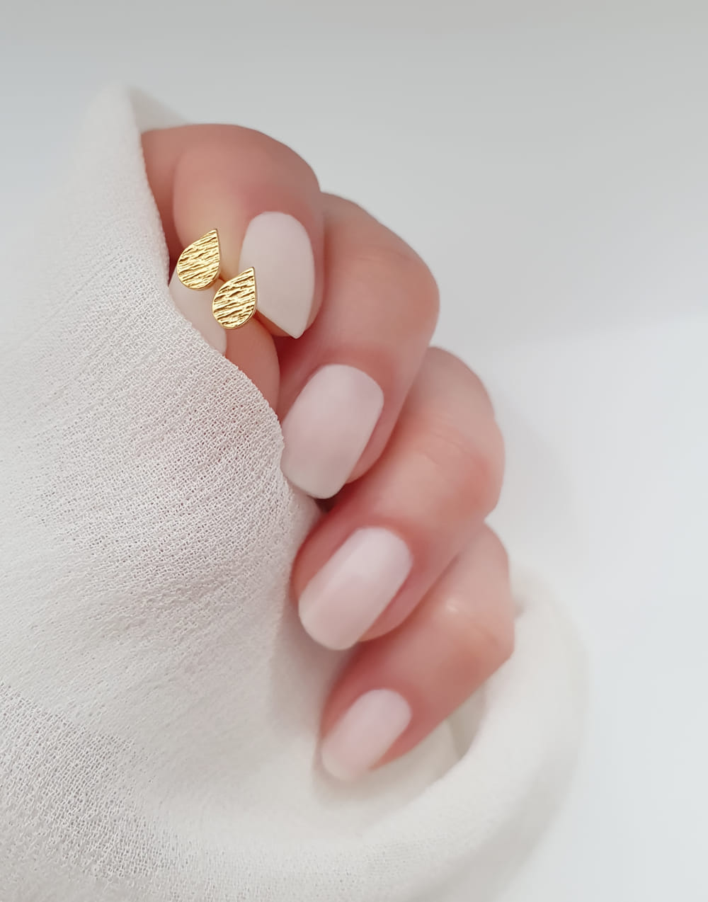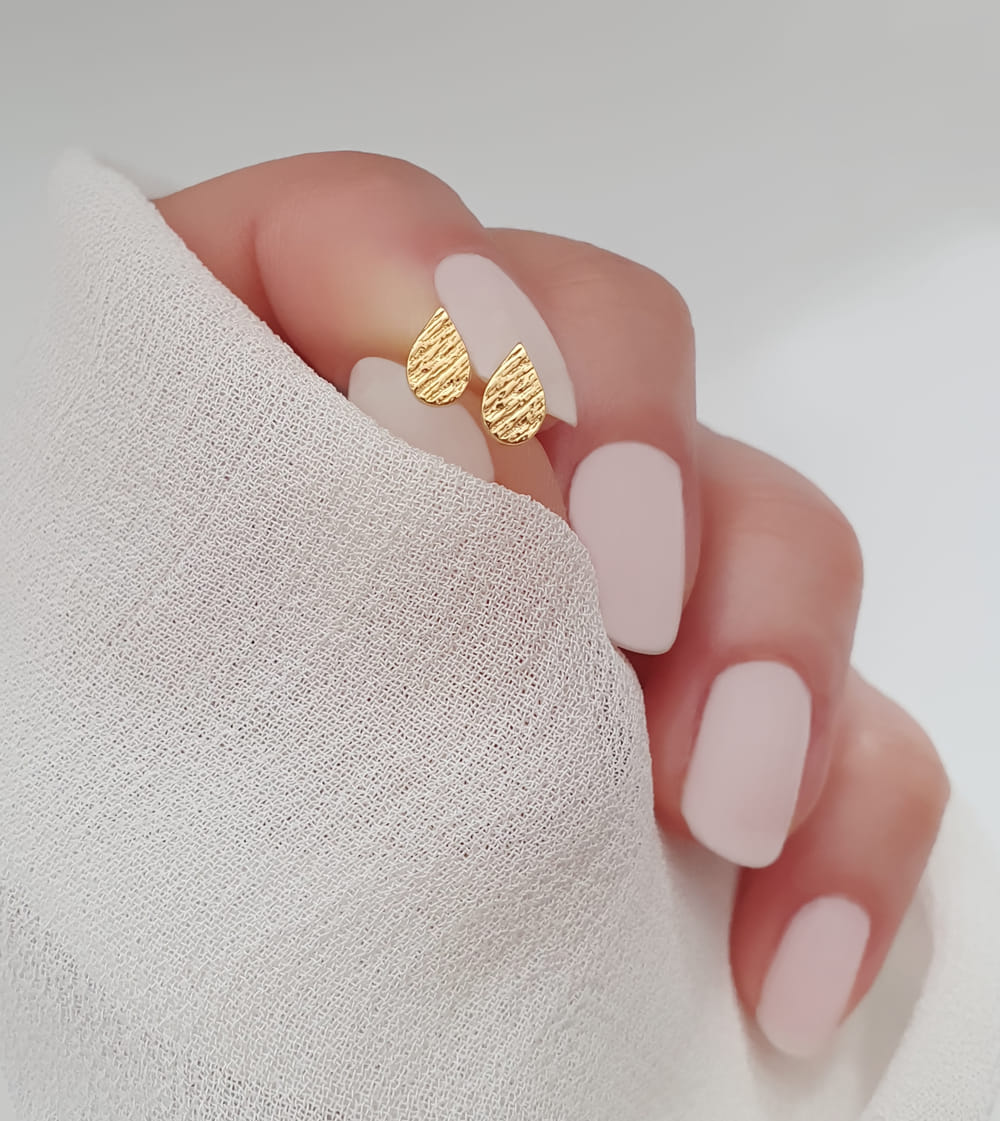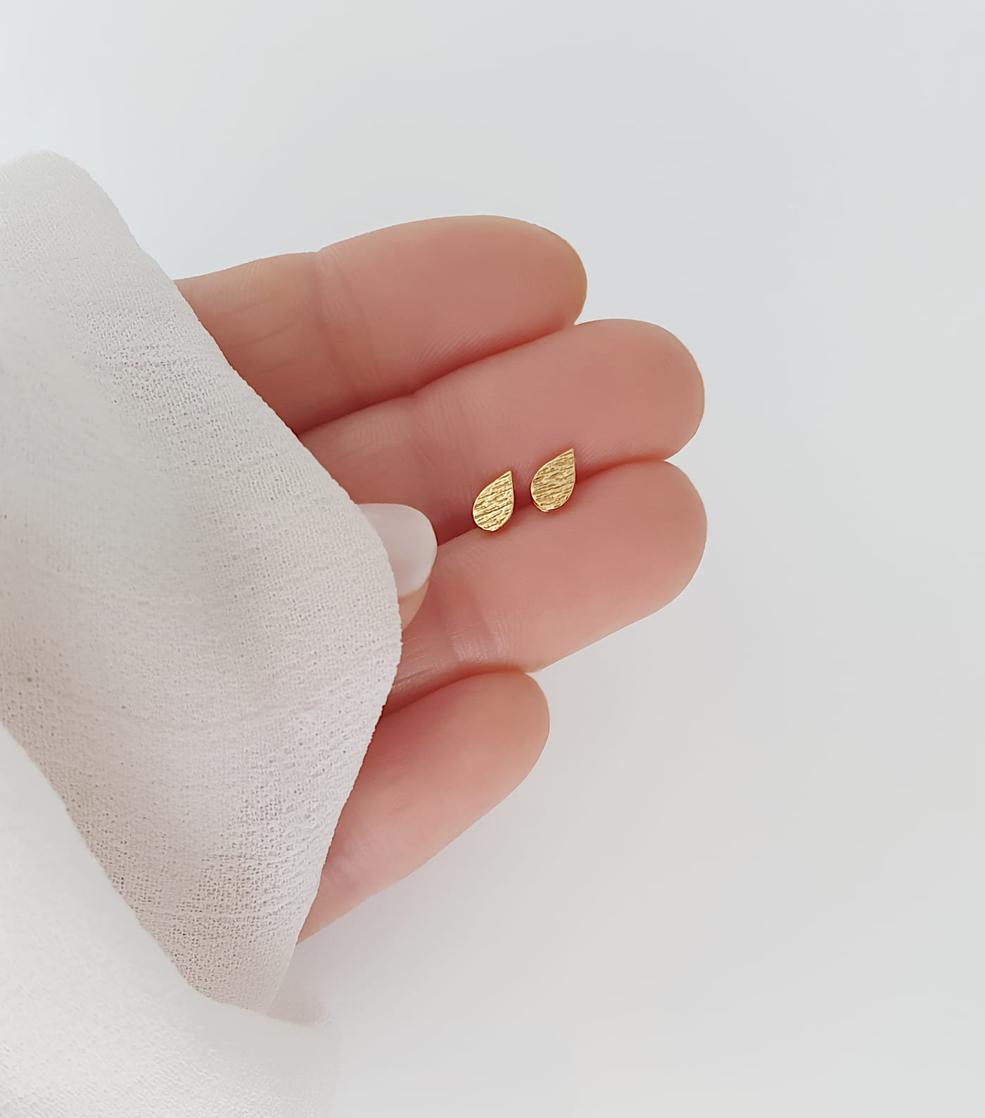 Ein Paar minimalistische Tropfenohrstecker aus 925 Silber vergoldet.