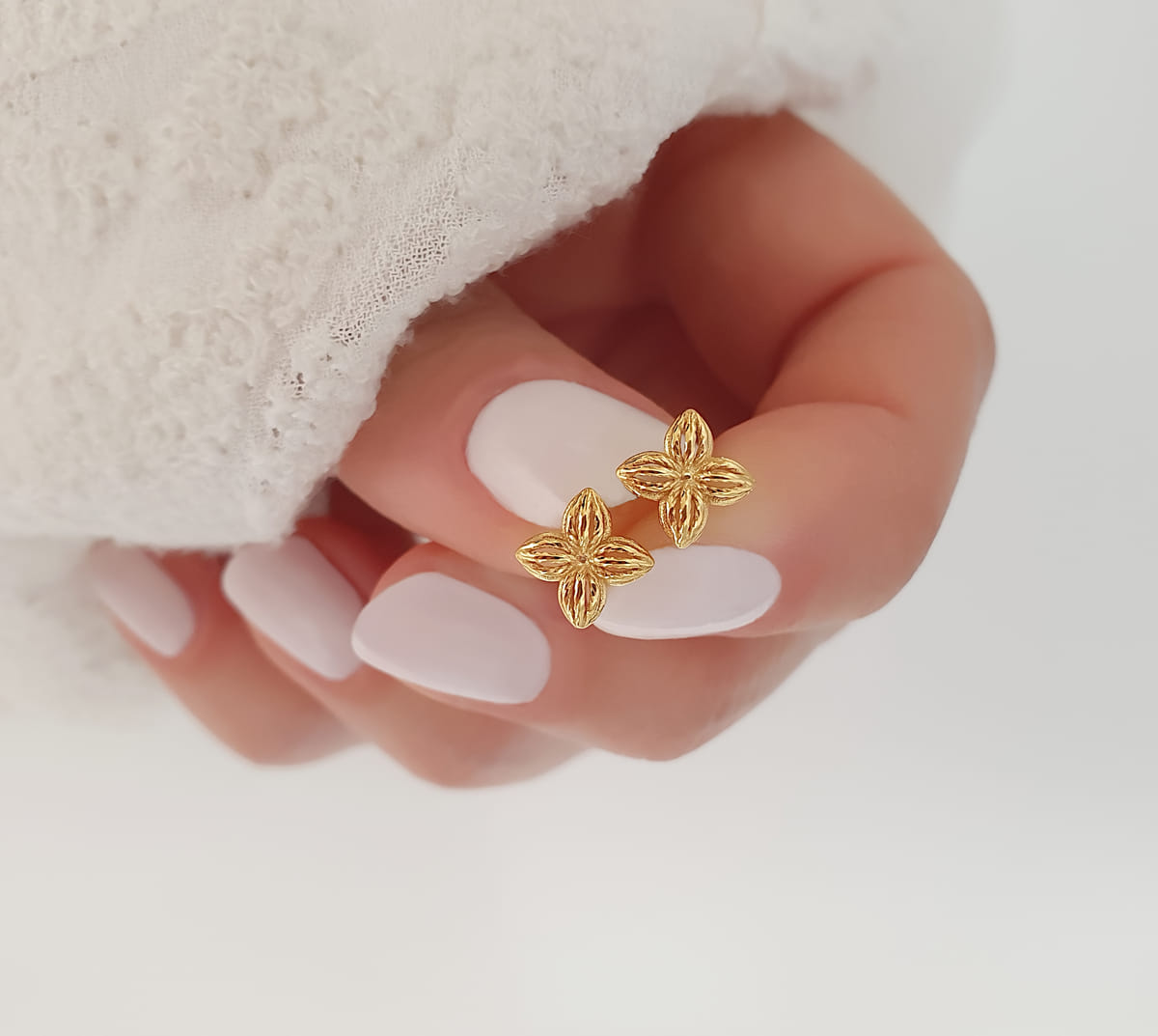 Ein Paar kleine Blüten Ohrstecker mit einem schlichten eleganten Design aus 925 Silber vergoldet.