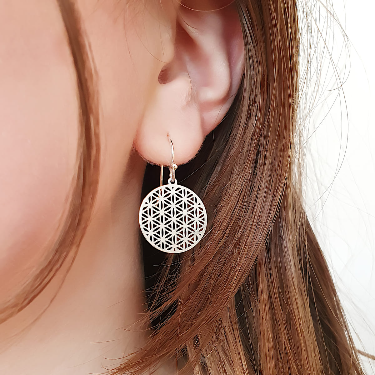 Ohrringe Blume des Lebens 925 Silber ø 20 mm | Ohrhaken Lebensblume Ohrhänger