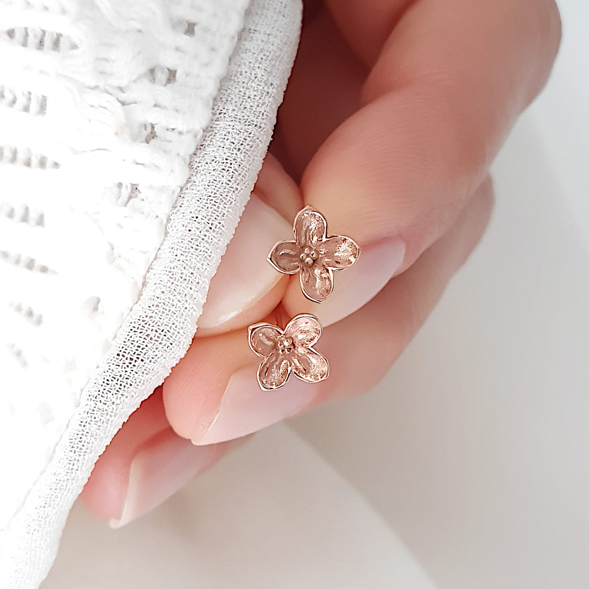 Blumen Ohrstecker 925 Silber rosevergoldet Zartes Flieder Design