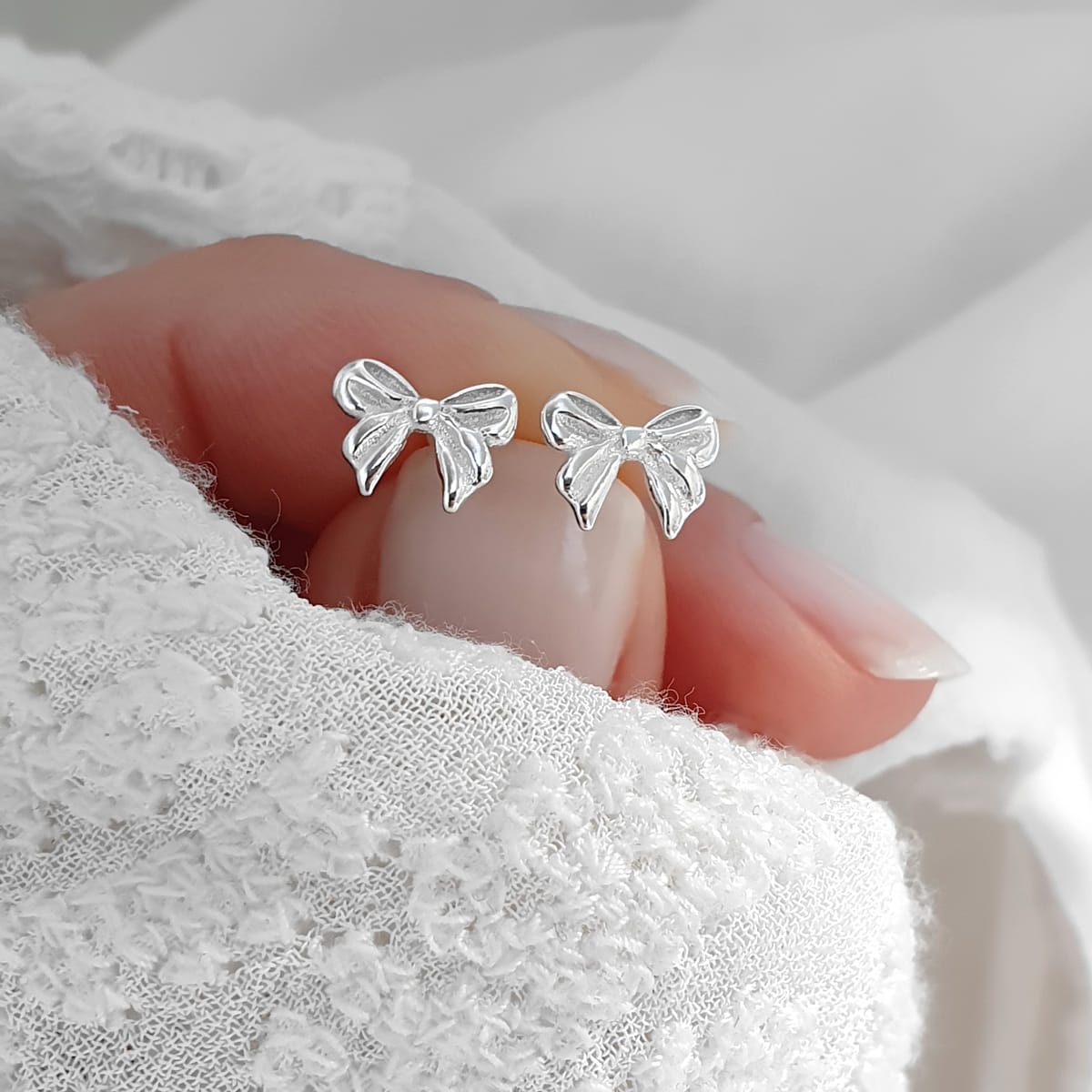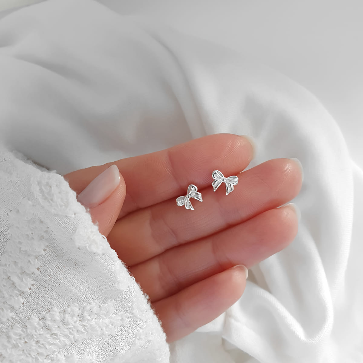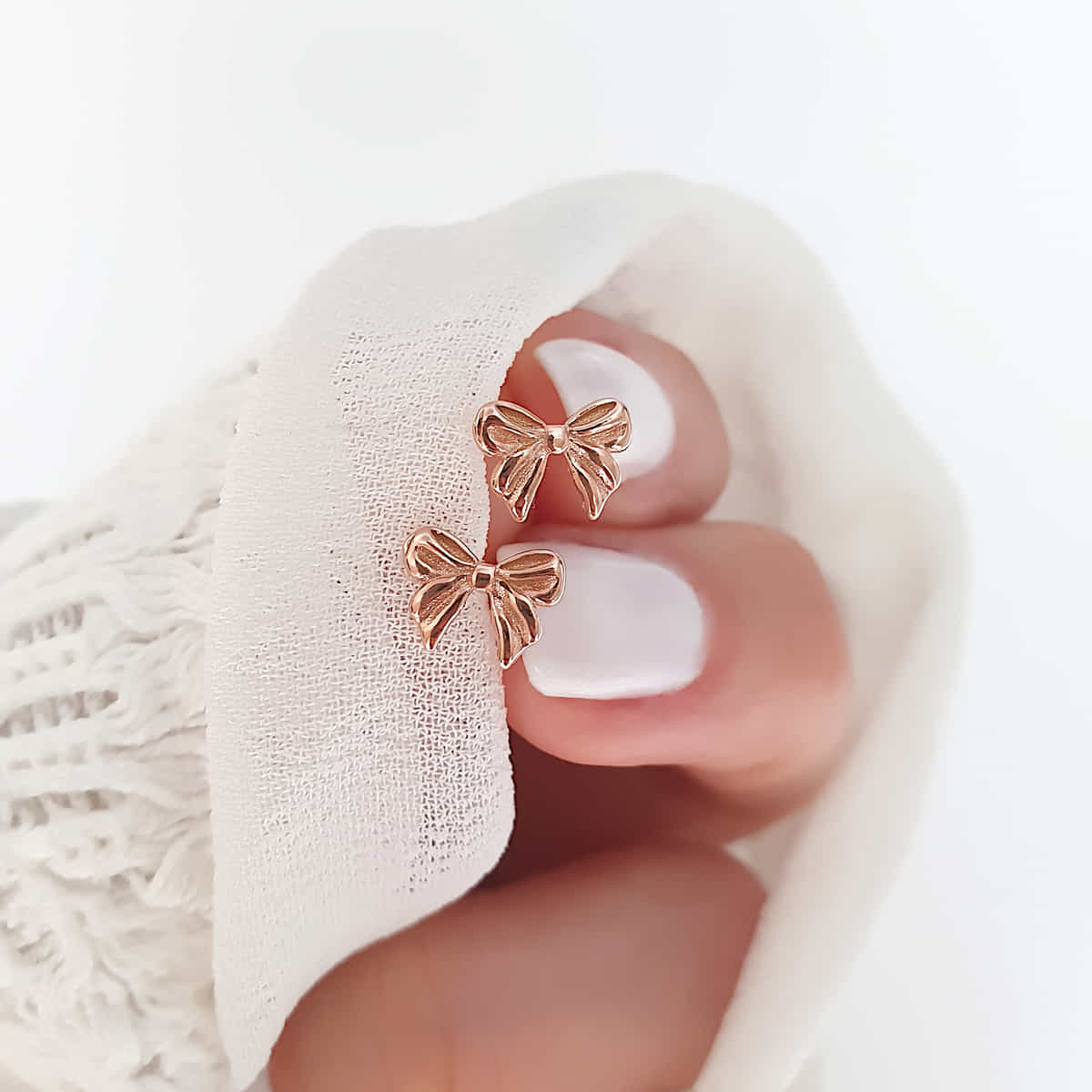 Die winzigen Schleifen, kunstvoll gestaltet, sind ein subtiler Ausdruck von Eleganz und Raffinesse.
