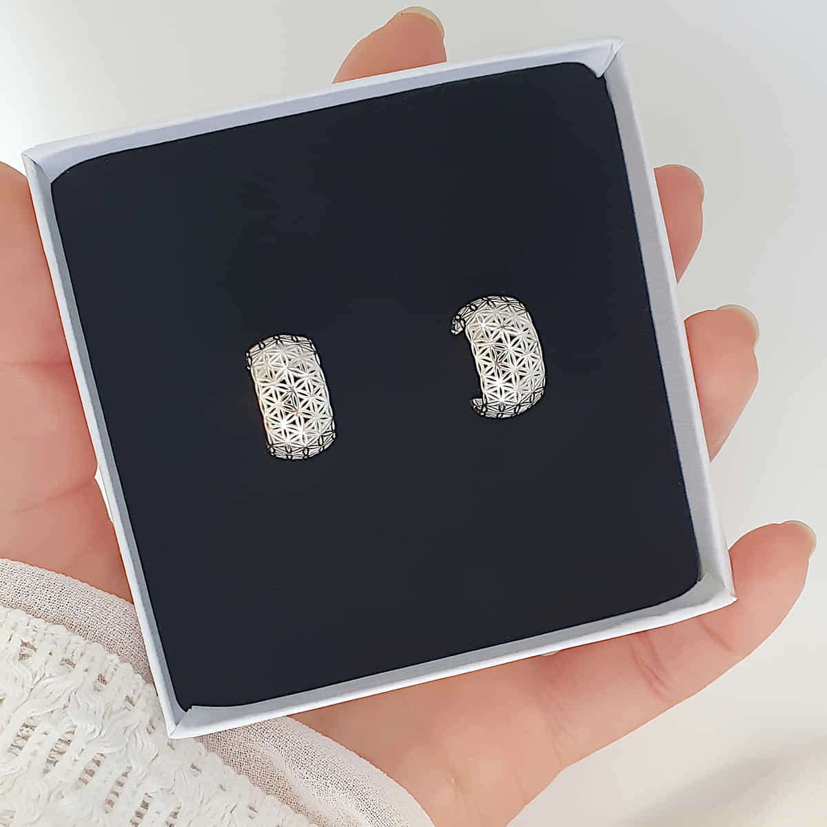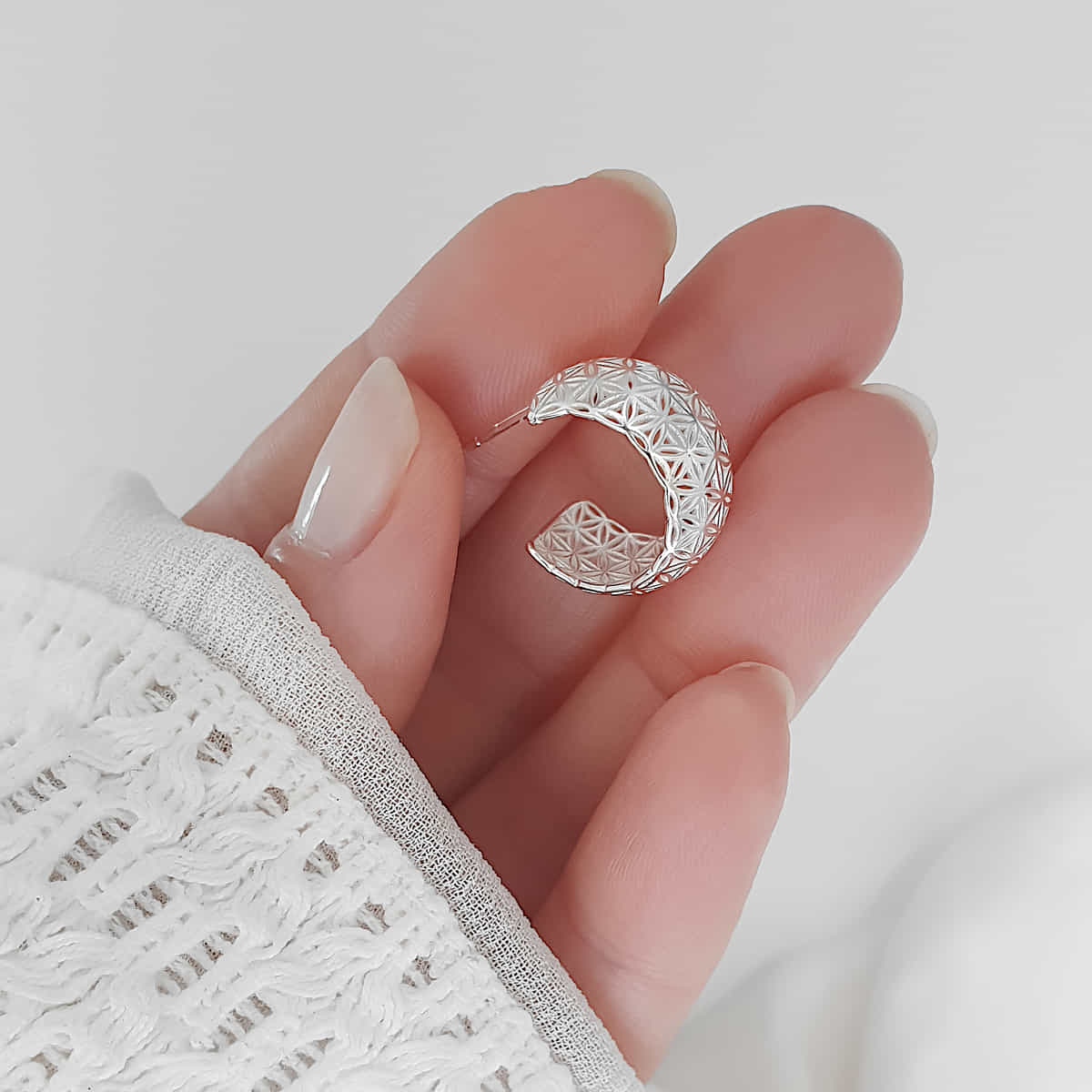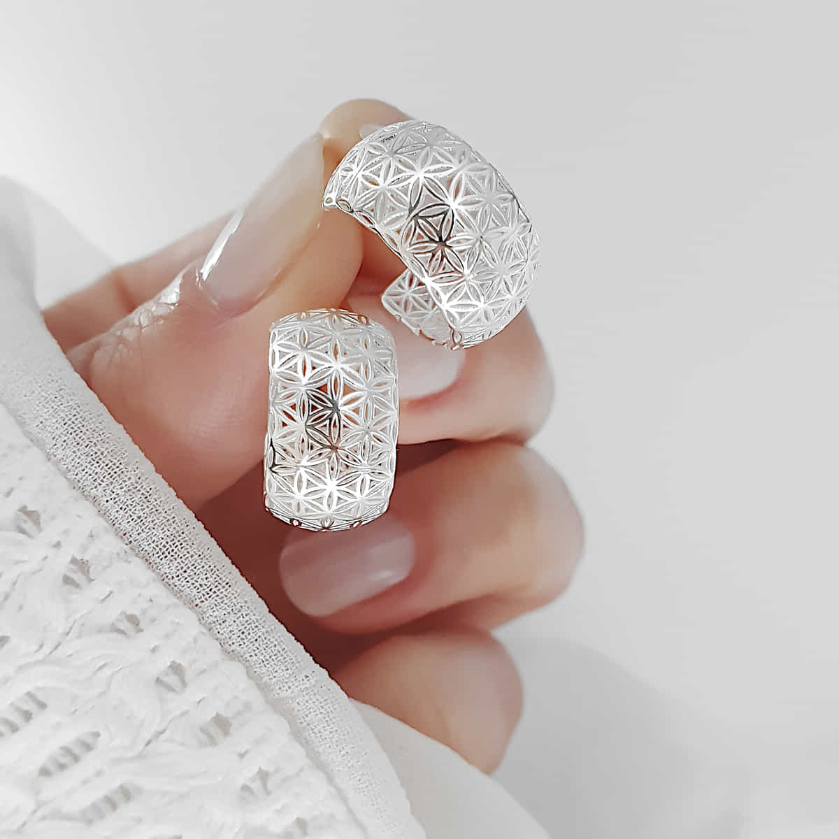 Gibt es etwas Schöneres als ein filigranes und detailreiches Blume-des-Lebens-Motiv? Unsere markanten Creolen aus edlem 952er Silber.