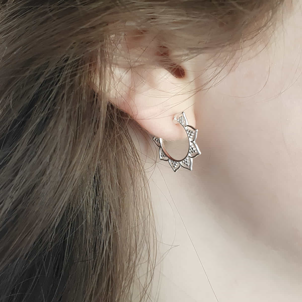 Perfekt für den lässigen Boho-Look, lassen sich diese Ohrringe (925 Silber) mühelos mit anderen Schmuckstücken kombinieren und verleihen jedem Outfit eine individuelle Note. Das elegante Design in Kombination mit floralen Muster macht diese Ohrringe zu einem wunderschönen Accessoire für den Sommerlook. Mit einem Durchmesser von 23 mm haben sie die ideale Größe, um sowohl dezent als auch auffällig zu wirken, je nach Anlass und Stil. Erleben Sie die Schönheit und tiefgründige Symbolik der Lotusblume mit diesen bezaubernden Paar Creolen. Ob als Geschenk für einen besonderen Menschen oder als Ergänzung Ihrer eigenen Schmucksammlung, diese Ohrringe werden sicherlich bewundert und geschätzt werden.