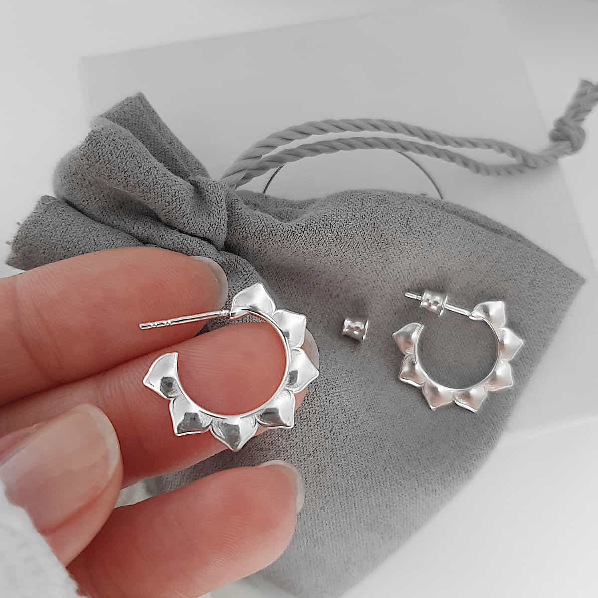 Schmuck mit Boho-Vibe – diese Lotusform Ohrringe aus reinem 925er Silber sind ein wahres Highlight für Liebhaberinnen des Boho- und orientalischen Stils.