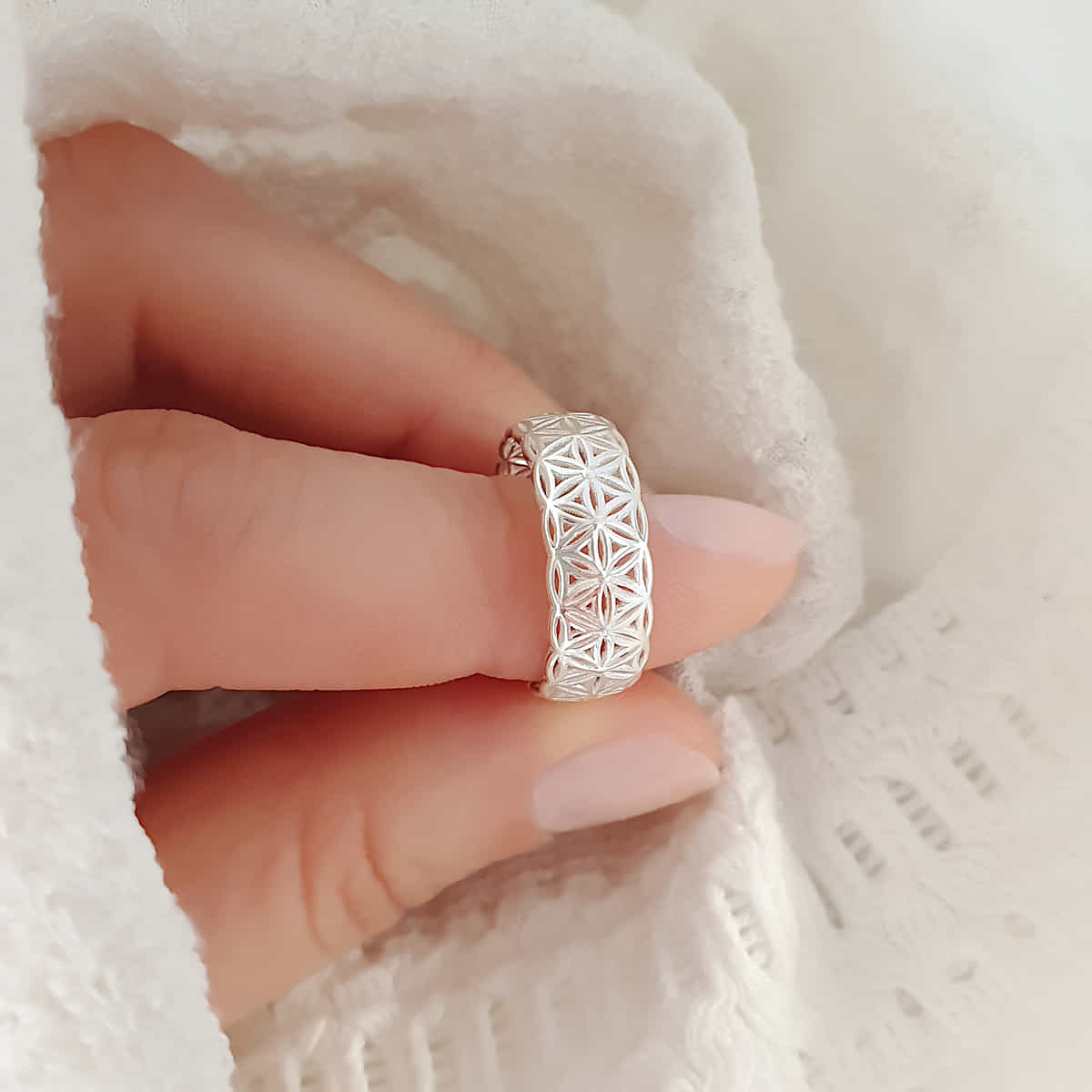 Produktinformationen "Lebensblume Damenring 7 mm Gewölbter Design"