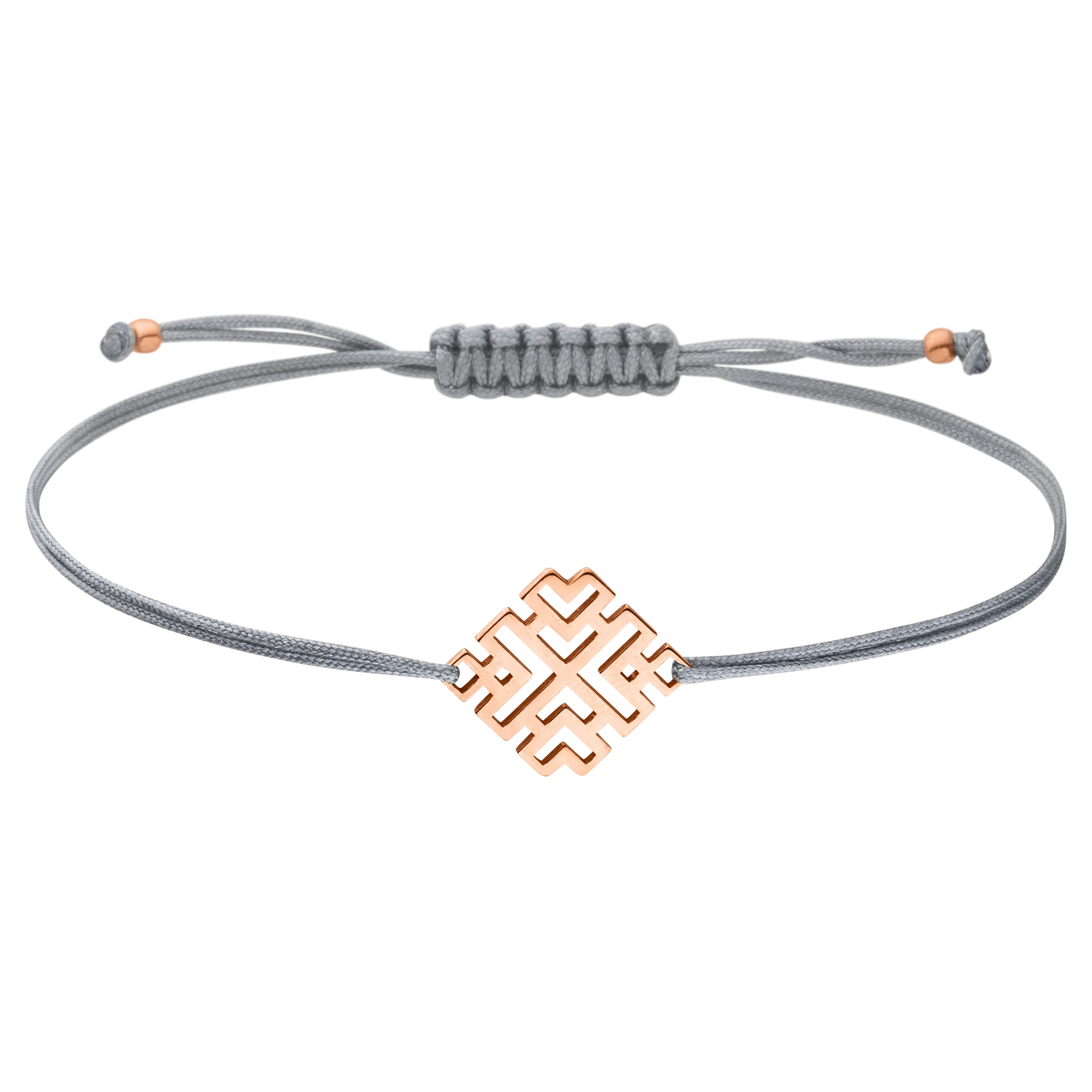Graues Textil setzt ein dezentes aber zugleich aufregendes ETNO-Symbol aus rosevergoldetem 925 Silber in Szene.
