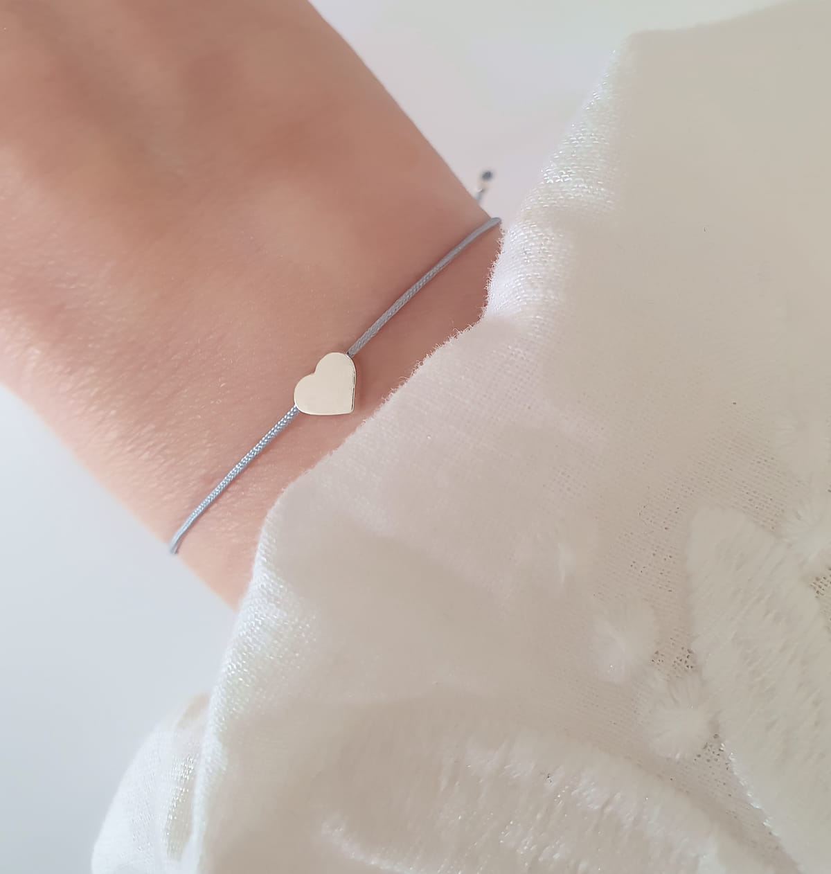 Textilarmband in Grau mit einem Herzsymbol aus 925 Silber.