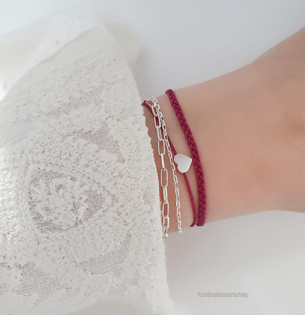 Freundschaftsarmband Herz Symbol in Silber-Grau 925 Silber | Textil BFF Armband
